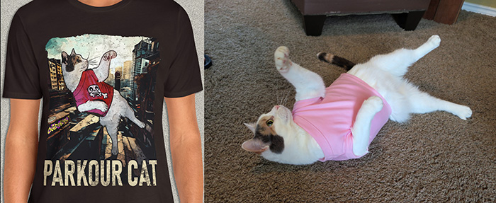 Howdy cat lovers, new shirt alert! The star of this shirt is Bug, from a pic I took of her acting like a total maniac at her 2nd birthday party (~5 yrs ago). I never knew what to do with the pic, until I rotated it vertical, then it was like... yeah, parkour. πΈ You can find it in the Merch Store!